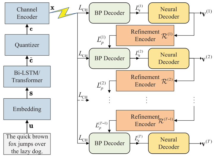 We consider the wireless text transmission using joint source-channel coding (JSCC). Classical source coding only considers the syntactic information based on probabilistic models, ignoring the meaning of source messages. Neural network based joint source and channel coders handle the source semantic information more efficiently. However, existing semantic transmission using end-to-end neural networks do not generalize well under varying channel conditions. To tackle this, we propose a semi-neural framework with an iterative architecture, named iterative semantic JSCC (IS-JSCC). Specifically, at each iteration, the remaining semantics is extracted from the intermediate decoded text and is then used as a priori information for the channel decoder in the next iteration. Instead of reconstructing text explicitly, we synthesize the semantics of candidate words in the embedding space, weighted by their posterior probability. This soft semantic synthesis alleviates the error propagation and reduces the complexity of iterative decoding as well. Results show that compared to full-neural designs, the proposed framework can improve the quality of text reconstruction by joint iterative decoding and exhibit better robustness over wireless channels.